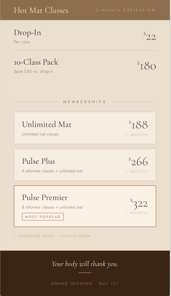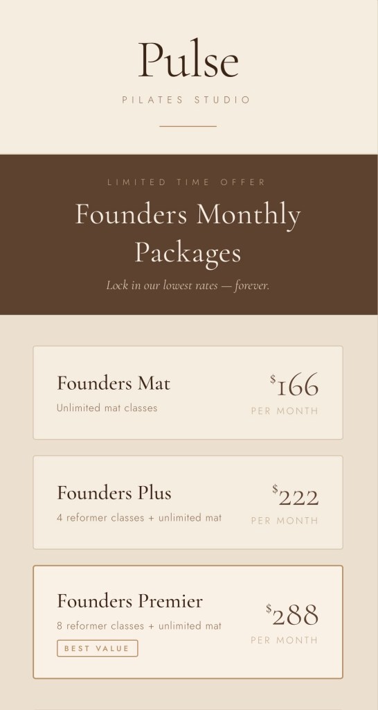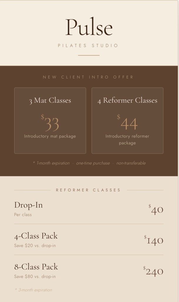 Pulse Pilates was created as an inclusive studio that provides a space for all people to find confidence in their practice and in their bodies. Our goal is to empower our students to discover their strength.